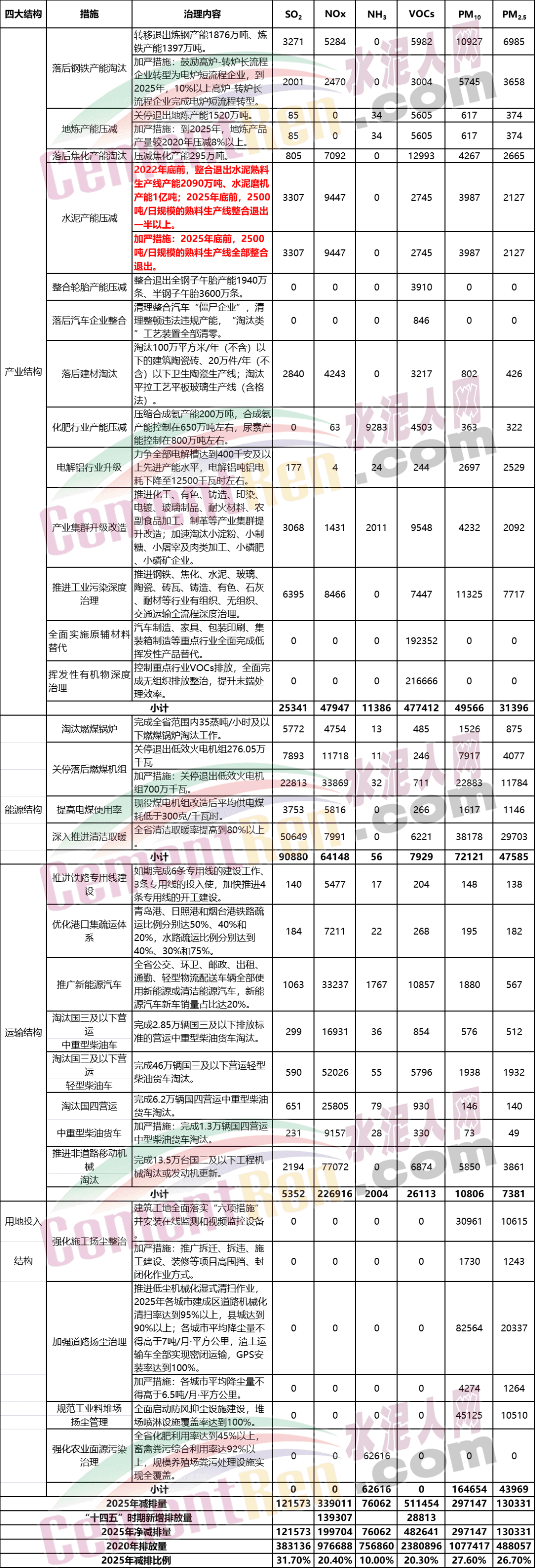 據(jù)水泥人網(wǎng)了解,近日,山東省生態(tài)環(huán)境廳發(fā)布《全省“十四五”和2021年空氣質(zhì)量改善目標及重點任務》,明確指出2022年底前,整合退出水泥熟料生產(chǎn)線產(chǎn)能2090萬噸、水泥磨機產(chǎn)能1億噸;2500噸/日規(guī)模的熟料生產(chǎn)線整合退出一半以上。2025年底前,2500t/d規(guī)模的熟料生產(chǎn)線全部整合退出。全文如下: