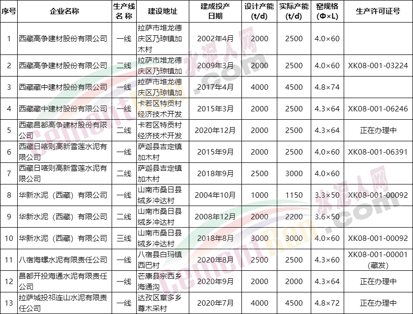 西藏自治區(qū)水泥熟料生產(chǎn)線清單顯示,包括西藏高爭、高新雪蓮、華新西藏、八宿海螺、昌都開投海通以及拉薩城投祁連山水泥在內(nèi)的13條熟料生產(chǎn)線,實(shí)際年產(chǎn)能達(dá)千萬噸以上。