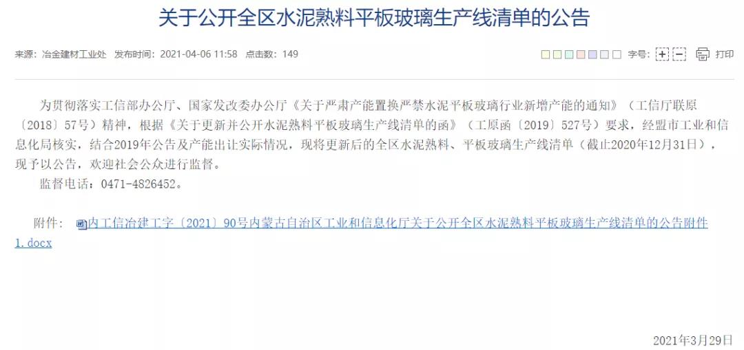 內(nèi)蒙古自治區(qū)水泥熟料生產(chǎn)線清單