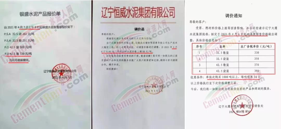 另有多家企業(yè)通知上調(diào)水泥價(jià)格,執(zhí)行最新開(kāi)票價(jià)格單,其中PO42.5散裝水泥報(bào)價(jià)330-360元/噸。
