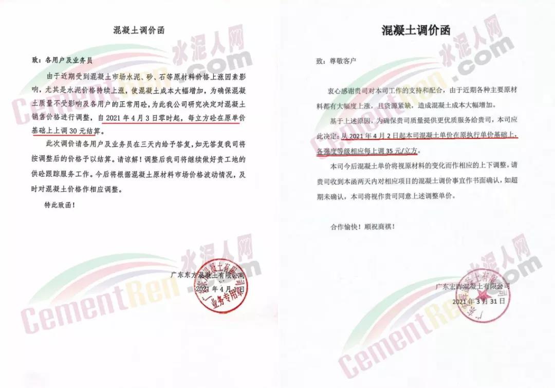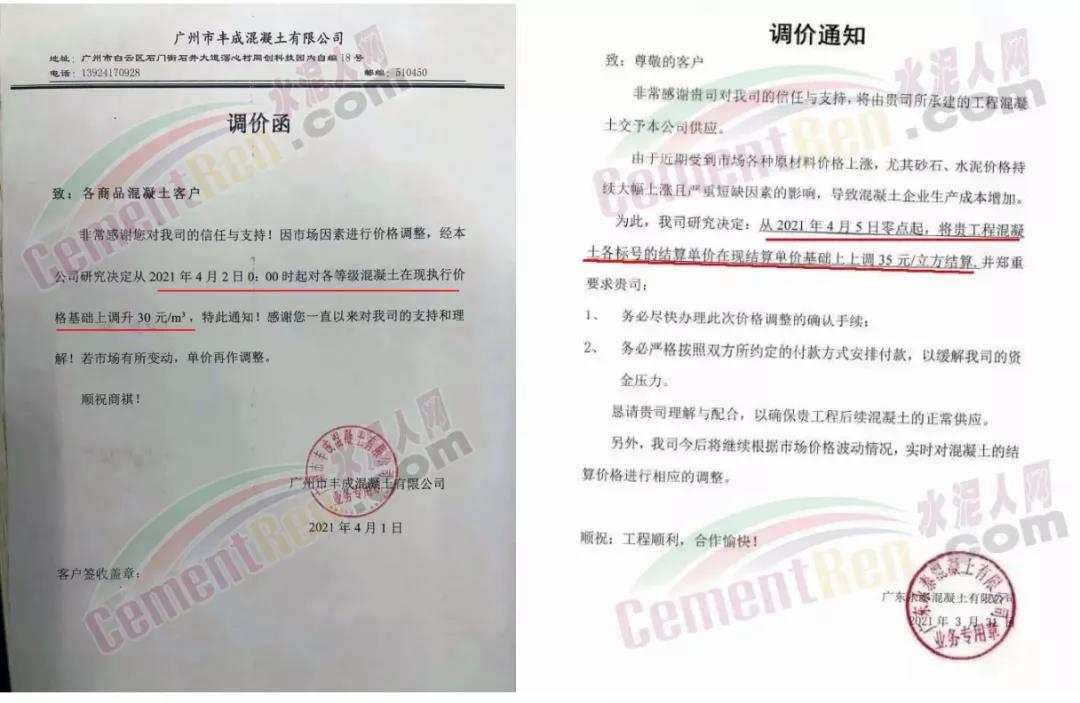 與此同時(shí),廣州市泰和混凝土有限公司、廣東東方混凝生有限公司、廣州市豐成混凝土有限公司、廣東永泰混凝有限公司、廣東宏暉混凝土有限公司等混凝土企業(yè)自4月2日起陸續(xù)通知上調(diào)商品混凝土價(jià)格30~35元/方。