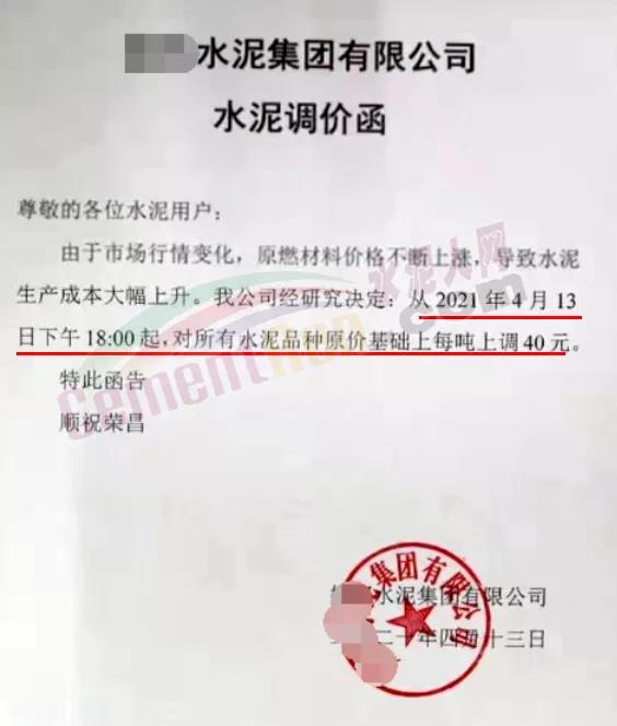 梅州皇馬水泥有限公司通知,自4月14日零時起,所有袋裝水泥出廠價格分別在原價基礎(chǔ)上上調(diào)20元/噸。