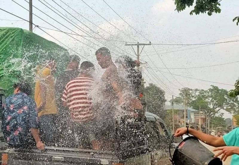雖然此前緬甸國管委宣布取消今年的潑水節(jié)活動,但在若開邦實兌、撣邦當(dāng)陽等地,仍然有部分民眾上街潑水。