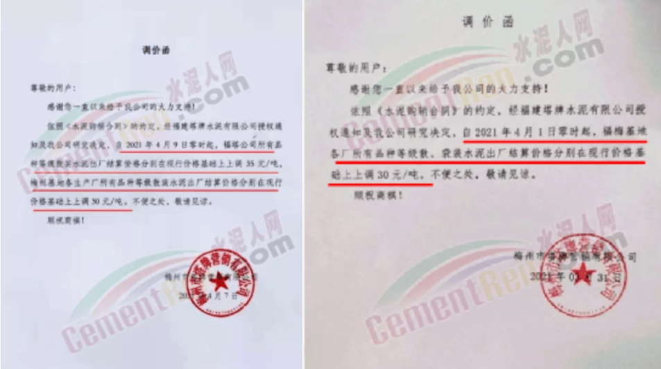 根據(jù)當前市場行情,我公司于2021年3月26日8:00時,對M32.5級袋裝水泥上調(diào)20元/噸,對PO42.5級袋裝水泥價格上調(diào)30元/噸,特此通知!