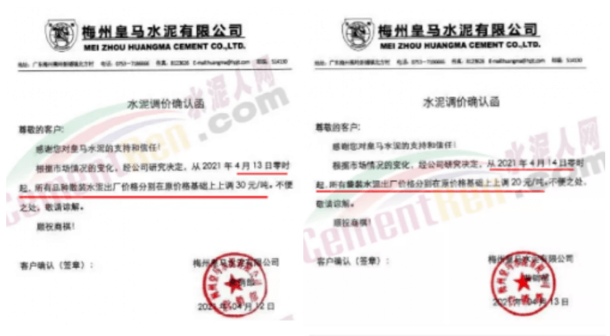 根據(jù)當前市場行情,我公司于2021年4月14日8:00時,對M32.5級袋裝、PO42.5級袋裝水泥上調(diào)20元/噸,特此通知!