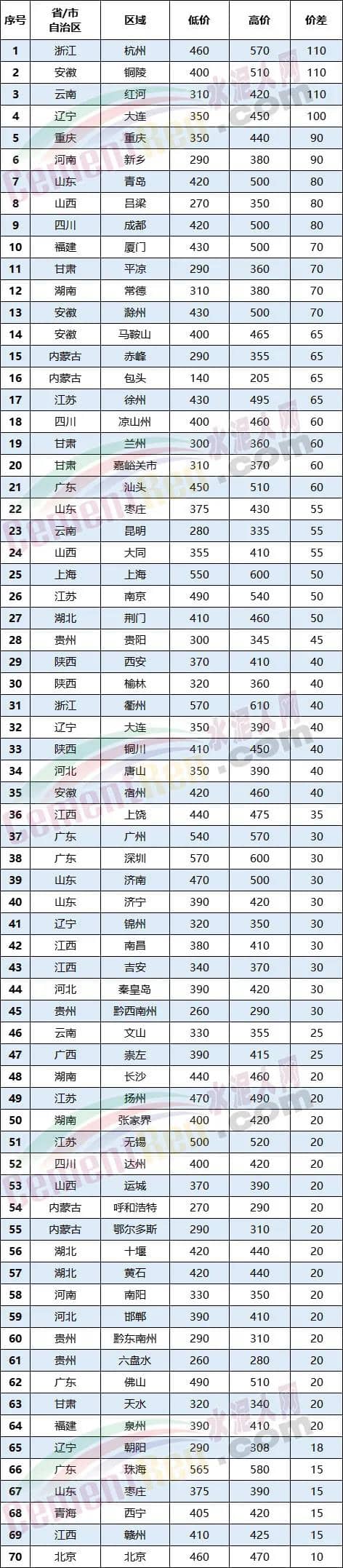 受兩大核心區(qū)域漲價(jià)輻射影響,相鄰區(qū)域紛紛發(fā)函上調(diào)水泥熟料價(jià)格。在一片漲價(jià)聲中,有一些不和諧的聲音。因部分企業(yè)未落實(shí)漲價(jià),令區(qū)域內(nèi)出現(xiàn)不小的價(jià)格差。從水泥人網(wǎng)信息中心重點(diǎn)監(jiān)控的70個(gè)地區(qū)來看,價(jià)差最高的區(qū)域?yàn)檎憬贾?、安徽銅陵、云南紅河、遼寧大連等區(qū)域,價(jià)差在100元/噸左右,最高價(jià)差在110元/噸左右。