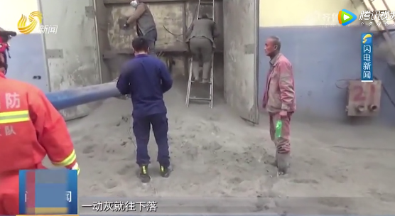4月21日在山東菏澤市鄄城縣一名工人在工作時(shí),不慎墜入水泥庫(kù),腰部以下陷在水泥灰中,附近水泥灰堆垛,高達(dá)4米,工人越陷越深,隨時(shí)有坍塌的危險(xiǎn),情況十分緊急。