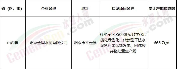 水泥廠產能出讓公示