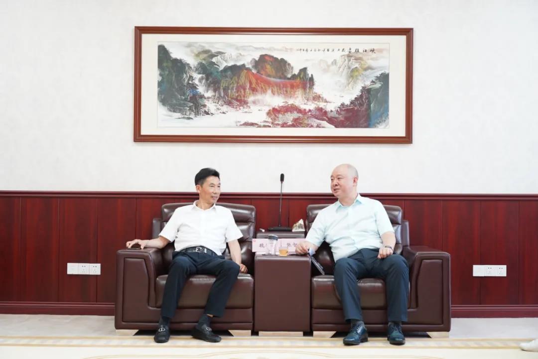 媧石集團董事長魏華山(左一)與港航實業(yè)執(zhí)行董事張智勇(右一)交談