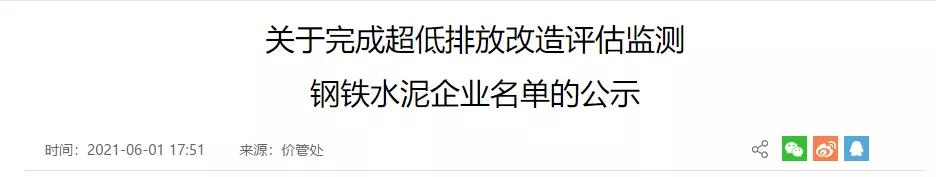 6月1日河南省發(fā)改委發(fā)布《關(guān)于完成超低排放改造評(píng)估監(jiān)測鋼鐵水泥企業(yè)名單的公示》稱,為推進(jìn)鋼鐵、水泥企業(yè)超低排放改造,持續(xù)改善環(huán)境空氣質(zhì)量,按照相關(guān)文件要求經(jīng)對(duì)全省鋼鐵、水泥企業(yè)“有組織排放、無組織排放”改造情況進(jìn)行評(píng)估。截至2021年5月底,安陽鋼鐵股份有限公司、濟(jì)源中聯(lián)水泥有限公司等136家鋼鐵、水泥企業(yè)“有組織排放、無組織排放”完成了超低排放改造評(píng)估監(jiān)測,現(xiàn)將完成超低排放改造評(píng)估監(jiān)測的鋼鐵企業(yè)和水泥企業(yè)名單予以公示。