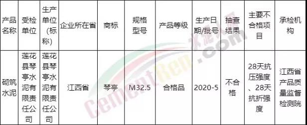 江西省市場監(jiān)督管理局發(fā)布監(jiān)督抽查結(jié)果顯示一個批次砌筑水泥28天抗壓強(qiáng)度、28天抗折強(qiáng)度不合格。產(chǎn)品生產(chǎn)單位標(biāo)稱為蓮花縣琴亭水泥有限責(zé)任公司。