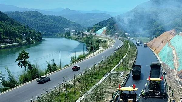 通達(dá)石臺縣的池祁高速池州至石臺段已經(jīng)開鋪瀝青面層。金海礁攝