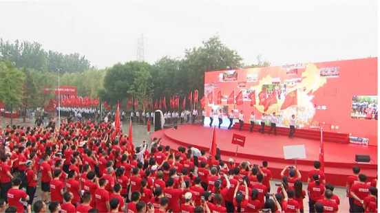 活動現(xiàn)場舉行了“健跑百年路奮斗新征程”100站旗手會師儀式。100位旗手高擎著鮮艷的站旗,步伐鏗鏘、氣勢昂揚(yáng),他們代表著從黨史中不斷汲取智慧和力量的中國建材人,更加明理、增信、崇德、力行,滿懷信心啟航新征程!