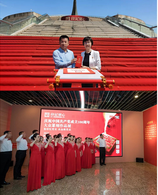 健跑前夕,孫力實(shí)向中華世紀(jì)壇贈送了新材料印章,廣大黨員參觀中華世紀(jì)壇舉辦的“印記初心——慶祝中國共產(chǎn)黨成立100周年大眾篆刻作品展”,并開展重溫入黨誓詞活動。