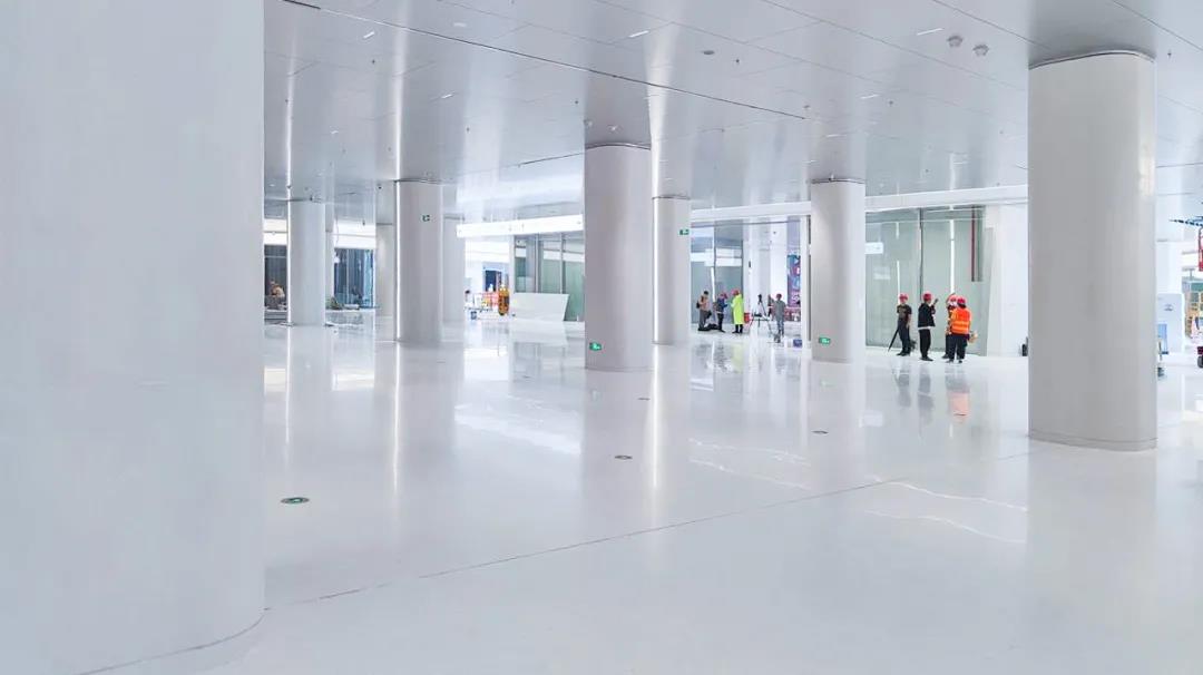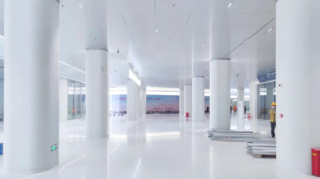 進(jìn)站通道風(fēng)格簡潔,地面采用到華潤水泥人造石,整體設(shè)計極具未來感。