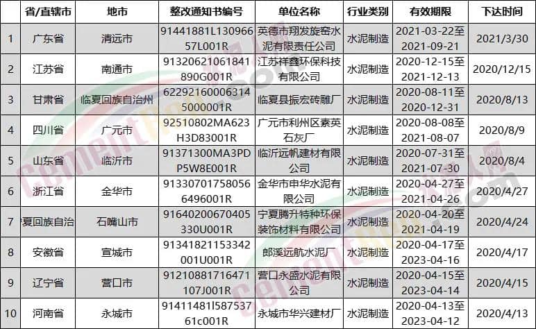 日前,水泥人網(wǎng)從生態(tài)環(huán)境部全國排污許可證管理信息平臺了解到,近兩年有多家水泥行業(yè)企業(yè)被要求限期限整改。
