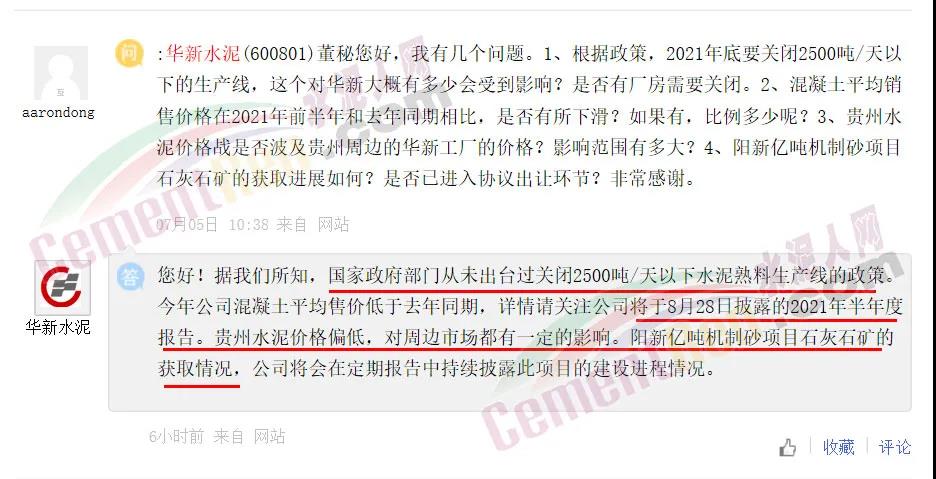 針對(duì)上述問題,華新水泥上市公司回復(fù)稱: