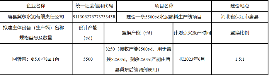 冀東水泥有限責(zé)任公司產(chǎn)能置換方案予以公告,歡迎社會公眾進(jìn)行監(jiān)督。