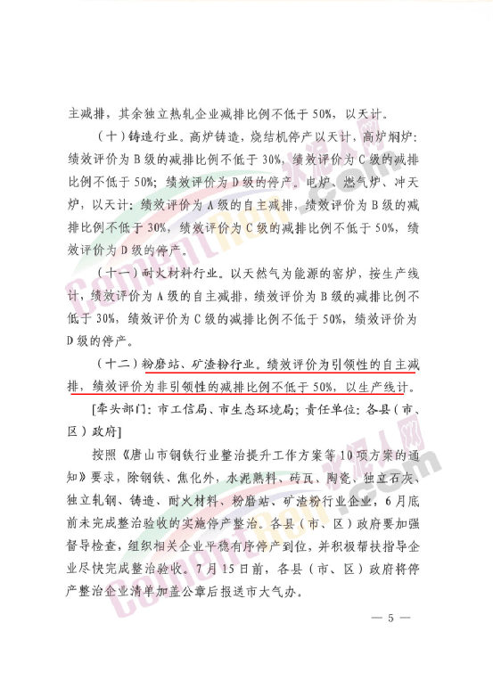 日前,唐山市大氣污染防治工作領(lǐng)導(dǎo)小組辦公室發(fā)布《唐山市7月份空氣質(zhì)量攻堅方案》要求水泥行業(yè)按要求減排停產(chǎn)。