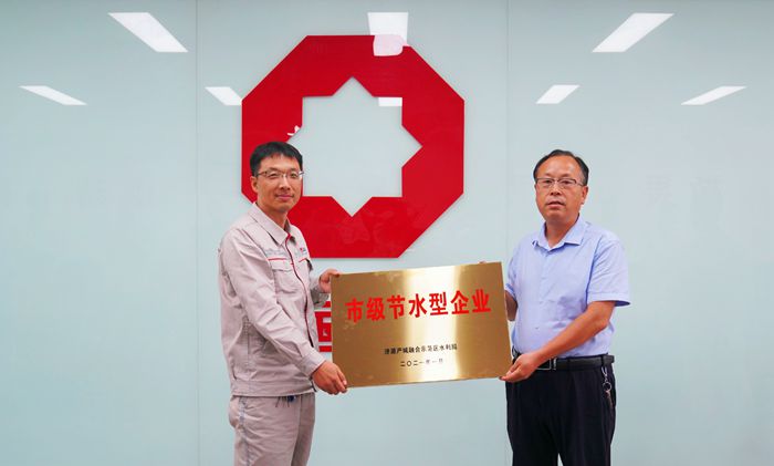 7月9日,濟源產(chǎn)城融合示范區(qū)水利局節(jié)水辦主任薛天印一行到濟源中聯(lián)頒發(fā)“市級節(jié)水型企業(yè)”牌匾。受公司黨委書記、總經(jīng)理匡三浩委托,公司副總經(jīng)理孫立軍代表公司領(lǐng)取榮譽。