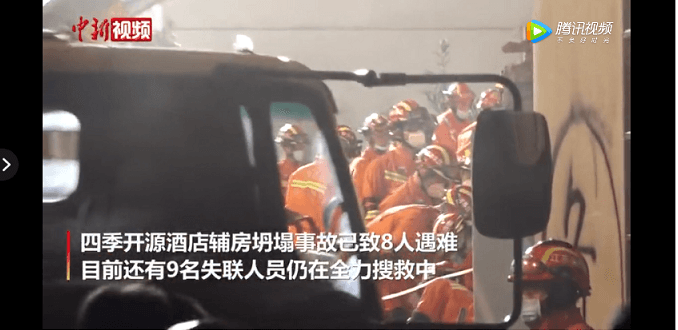 7月12日15時(shí)33分許,江蘇省蘇州市吳江區(qū)四季開源酒店輔房發(fā)生坍塌。根據(jù)旅館入住登記信息,前期發(fā)現(xiàn)有18名被困人員,后經(jīng)對(duì)各種新增信息進(jìn)一步分析甄別,發(fā)現(xiàn)還有5名未登記信息人員被困,現(xiàn)場被困人員總數(shù)應(yīng)為23名。