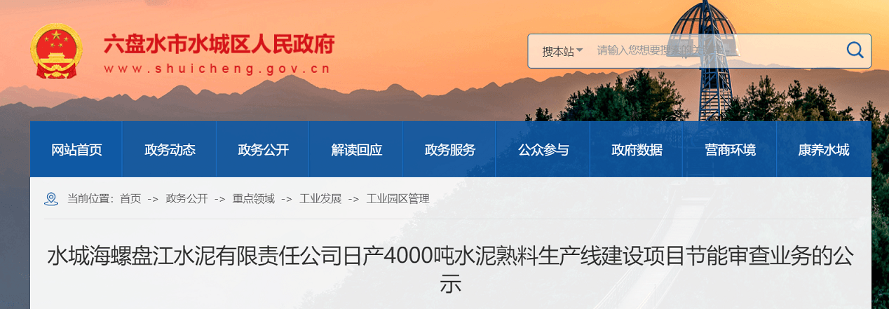 項目名稱:水城海螺盤江水泥有限責(zé)任公司日產(chǎn)4000噸水泥熟料生產(chǎn)線建設(shè)項目