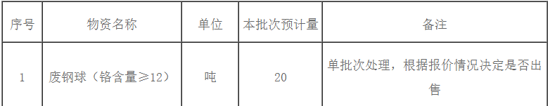 根據(jù)《廢舊物資管理辦法》,為規(guī)范公司廢舊物資出售管理,保證廢舊物資出售過程的公開、公平、公正,興業(yè)海螺計劃對2021-2022年公司內(nèi)廢舊物資進行公開招標,本次招標主要針對日常產(chǎn)生的廢舊物資以及部分廢鋼球一次性的處置出售,對年度內(nèi)技改項目大批量廢舊物資的集中處置將另行招標,歡迎具備廢舊物資回收條件的公司參加本次招標活動,現(xiàn)將有關(guān)事項公示如下: