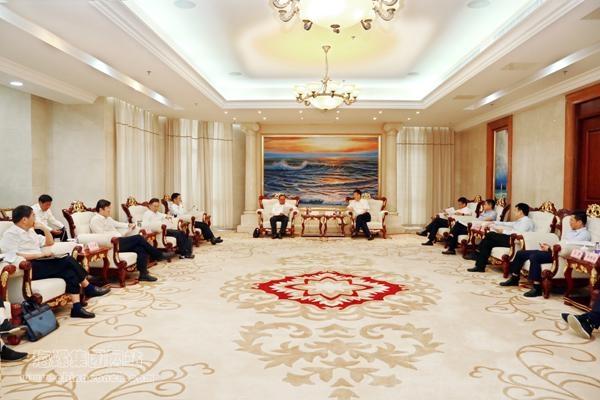 2021年7月17日,阜陽市委書記孫正東、市長劉玉杰率領(lǐng)阜陽市黨政代表團(tuán)一行來海螺集團(tuán)考察,集團(tuán)公司黨委書記、董事長王誠在集團(tuán)總部會見了阜陽市黨政代表團(tuán)一行。阜陽市委秘書長王波,副市長李紅、劉玉建,政協(xié)副主席秦煦,海螺集團(tuán)總經(jīng)理任勇,集團(tuán)副總經(jīng)理王建超、萬涌,集團(tuán)總經(jīng)理助理方原,海螺水泥副總經(jīng)理李曉波等參加了會見。