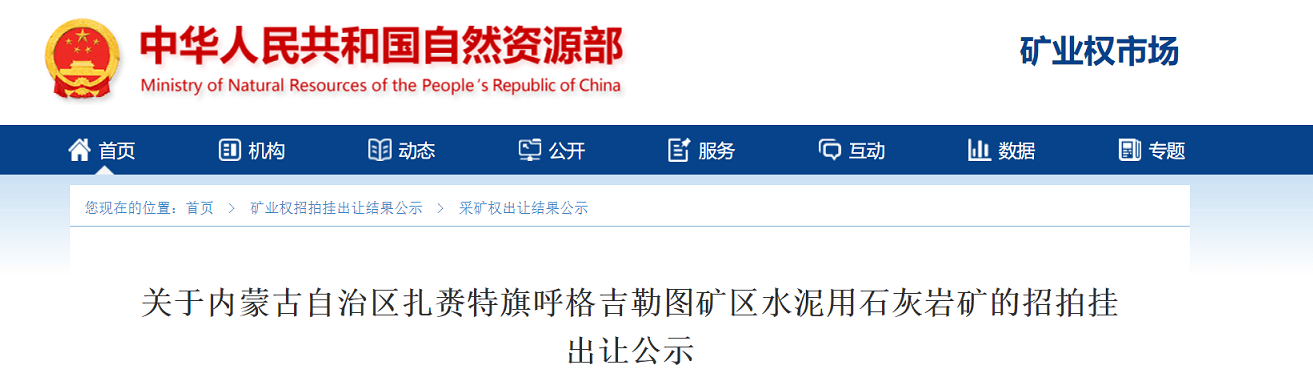 內(nèi)蒙古自治區(qū)扎賚特旗呼格吉勒?qǐng)D礦區(qū)水泥用石灰?guī)r礦采礦權(quán)出讓成交結(jié)果公示