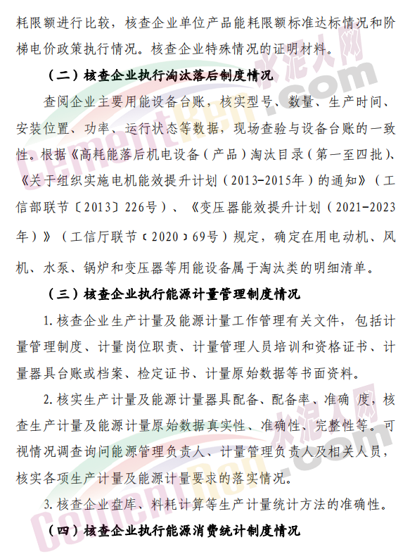 (一)強(qiáng)化責(zé)任落實(shí)。各地工業(yè)和信息化主管部門要將節(jié)能監(jiān)察作為落實(shí)《中華人民共和國(guó)節(jié)約能源法》和《工業(yè)節(jié)能管理辦法》、持續(xù)推進(jìn)工業(yè)綠色高質(zhì)量發(fā)展、助力碳達(dá)峰碳中和目標(biāo)實(shí)現(xiàn)的重要手段,對(duì)照2020年重點(diǎn)工業(yè)行業(yè)綜合督查檢查中發(fā)現(xiàn)的問(wèn)題和整改要求,進(jìn)一步強(qiáng)化主體責(zé)任,完善工業(yè)節(jié)能監(jiān)察體系,嚴(yán)格節(jié)能監(jiān)察執(zhí)法。按照專項(xiàng)監(jiān)察工作手冊(cè)(附件2,可在工業(yè)和信息化部門戶網(wǎng)站自行下載),認(rèn)真組織開展現(xiàn)場(chǎng)監(jiān)察。