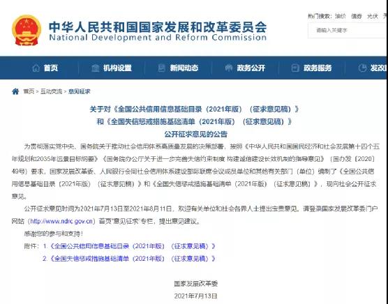 日前,國家發(fā)改委發(fā)布了《全國失信懲戒措施基礎(chǔ)清單(2021年版)(征求意見稿)》公開征求意見的公告》其中清單所列失信懲戒措施包括三類,共14項(xiàng):