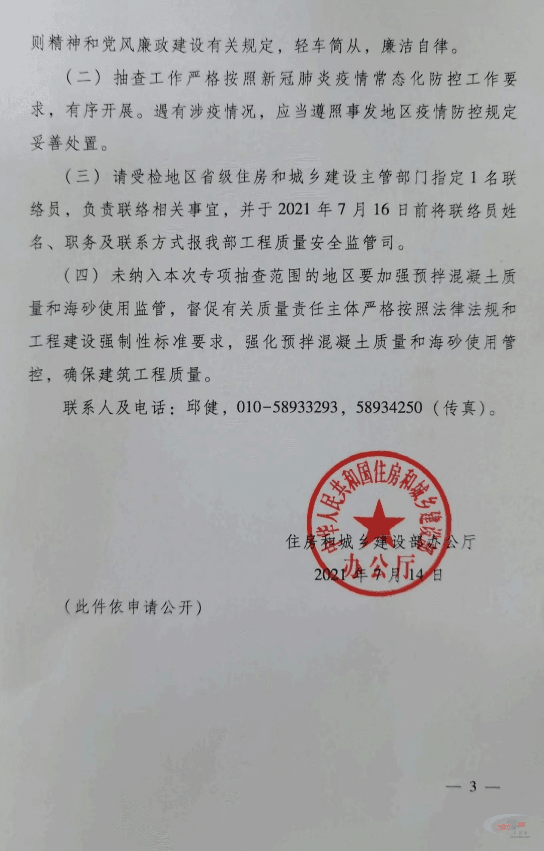 近日,住建部發(fā)布關(guān)于開展2021預(yù)拌混凝土質(zhì)量及海砂使用專項(xiàng)檢查通知。