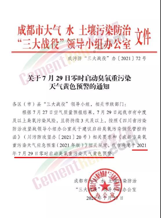 據(jù)水泥人網(wǎng)了解,成都市決定于7月29日零時啟動臭氧重污染天氣黃色預(yù)警。四川多地發(fā)布高溫橙色預(yù)警信號,成都、瀘州、達(dá)州、南充、遂寧、自貢都官宣進(jìn)入“晴熱少雨”高溫模式。