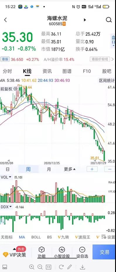 海螺水泥從最高點63.56元/股開始了“跳水”模式,截至7月28日最低盤中價,海螺水泥股價累計下跌了45%,總市值蒸發(fā)1512.84億元,一度被股民稱為A股市場上的“跳水冠軍”。