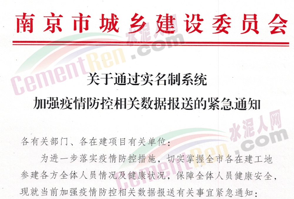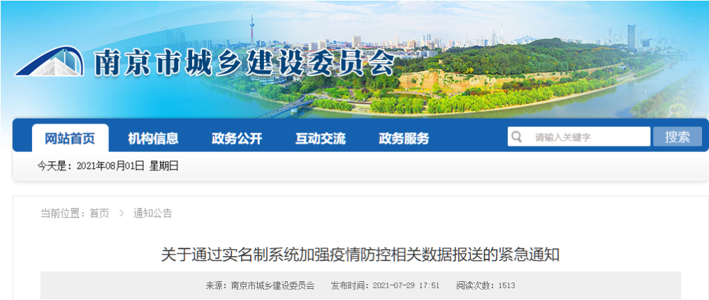 江蘇南京市城鄉(xiāng)建設委員會發(fā)布《關于通過實名制系統(tǒng)加強疫情防控相關數據報送的緊急通知。