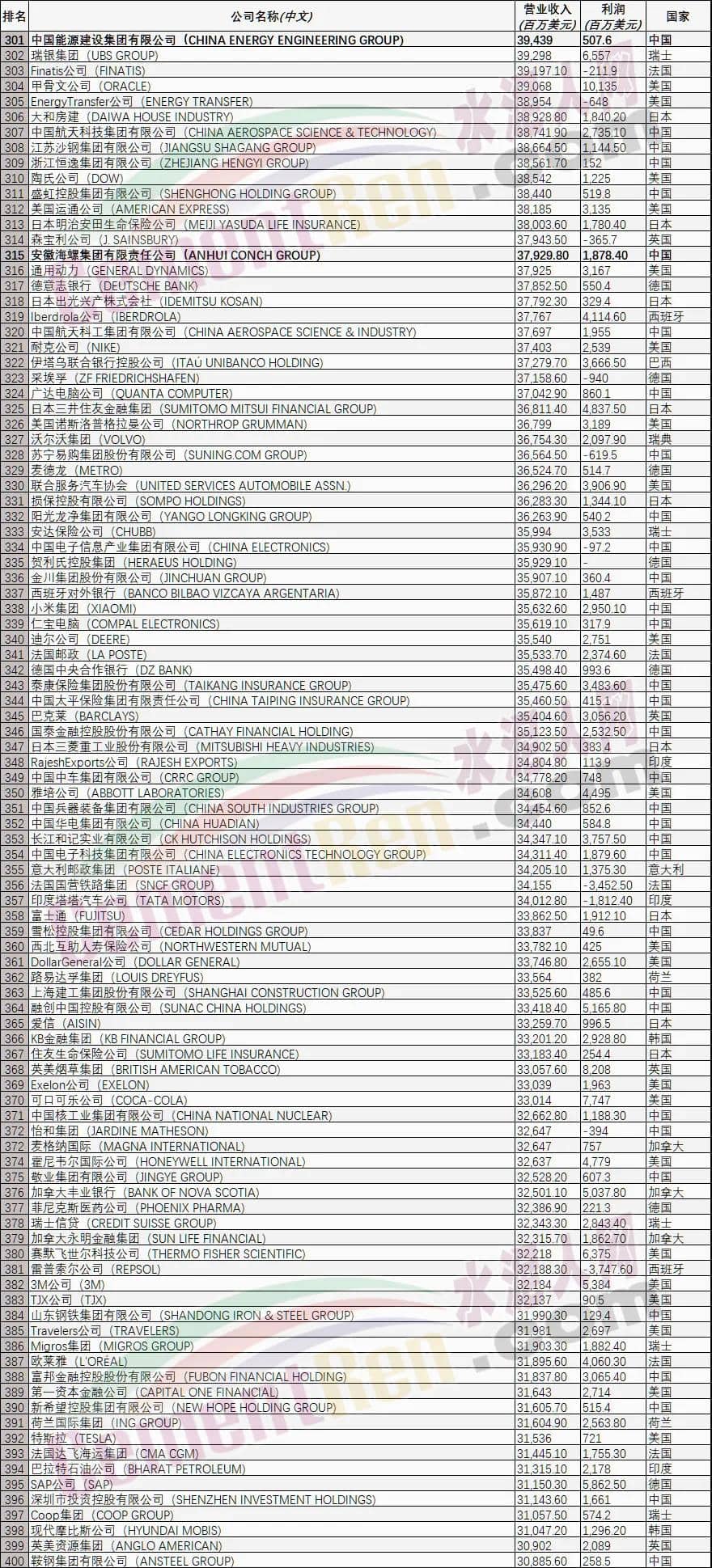 海螺集團(tuán)以379.29億美元的營(yíng)業(yè)收入位居第315位,連續(xù)三年進(jìn)入世界500強(qiáng),排名較上年大幅提升52位;