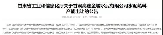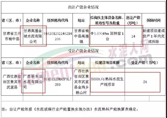 此外,甘肅省工信廳公開文件顯示,2020年9月甘肅高崖金城水泥有限公司24萬噸產(chǎn)能出讓至廣西新東運水泥有限公司用于新建5000t/d水泥熟料生產(chǎn)項目。