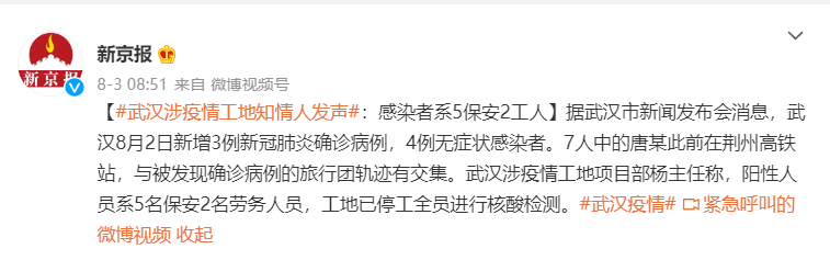 8月4日下午,重慶市奉節(jié)縣也報(bào)告了1例本地新冠肺炎無(wú)癥狀感染者與武漢沌口上述工地相關(guān)。