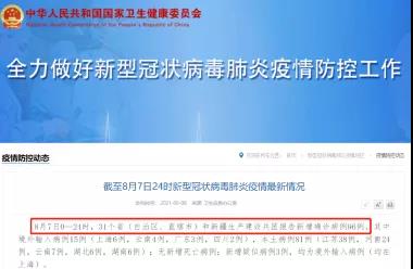 8月7日0時(shí)-24時(shí),河南省新增本土確診病例3例(鄭州市3例),無(wú)癥狀感染者轉(zhuǎn)確診病例21例(鄭州市20例、駐馬店市1例);新增本土無(wú)癥狀感染者2例(鄭州市2例)。