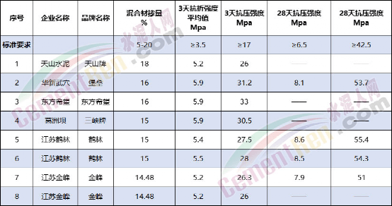 對(duì)比幾大品牌水泥,強(qiáng)度和混合材摻加量各有不同