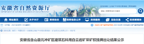 6月23日馬鞍山南方材料有限公司以70500萬元的價(jià)格競得了含山縣元沖礦區(qū)建筑石料用白云巖礦采礦權(quán)。