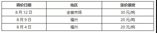 最高漲70元/噸,福建出廠報(bào)價(jià)最高380元/噸