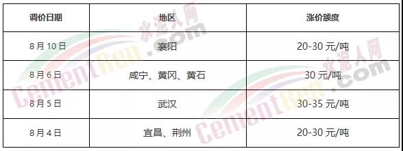 8月16日江西吉安地區(qū)主流品牌水泥通知價(jià)格上調(diào)30元/噸,下游需求漸恢復(fù)水泥價(jià)格再次上漲,兩輪累計(jì)漲價(jià)90元/噸,預(yù)計(jì)后期行情繼續(xù)保持穩(wěn)中偏強(qiáng)態(tài)勢。漲價(jià)后,江西永豐南方及贛州南方萬年青水泥PO42.5散裝水泥報(bào)價(jià)415元/噸。
