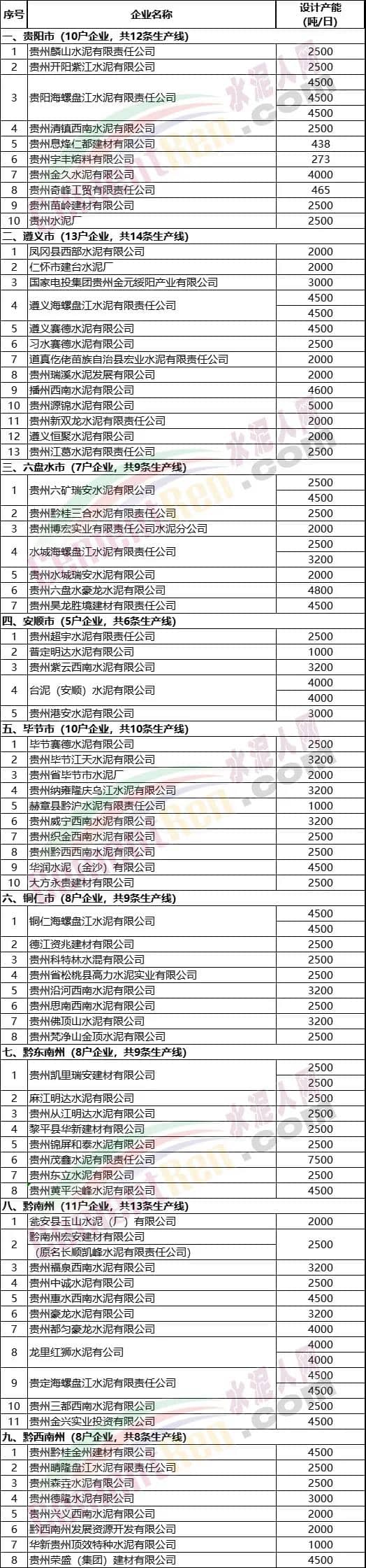 日前,貴州省發(fā)布通知要求省內(nèi)水泥熟料生產(chǎn)企業(yè)三季度錯(cuò)峰生產(chǎn)30天,四季度錯(cuò)峰生產(chǎn)30天。此前,貴州省曾發(fā)通知要求水泥企業(yè)在全年錯(cuò)峰生產(chǎn)100天/年的基礎(chǔ)上二、三季度各延長(zhǎng)10天,每條熟料線全年停限產(chǎn)達(dá)到120天以上。據(jù)貴州省工信廳此前發(fā)布的水泥熟料生產(chǎn)線清單顯示,貴州省內(nèi)共有包括西南水泥、海螺水泥、紅獅水泥、臺(tái)泥水泥等80家水泥企業(yè)90條熟料生產(chǎn)線。