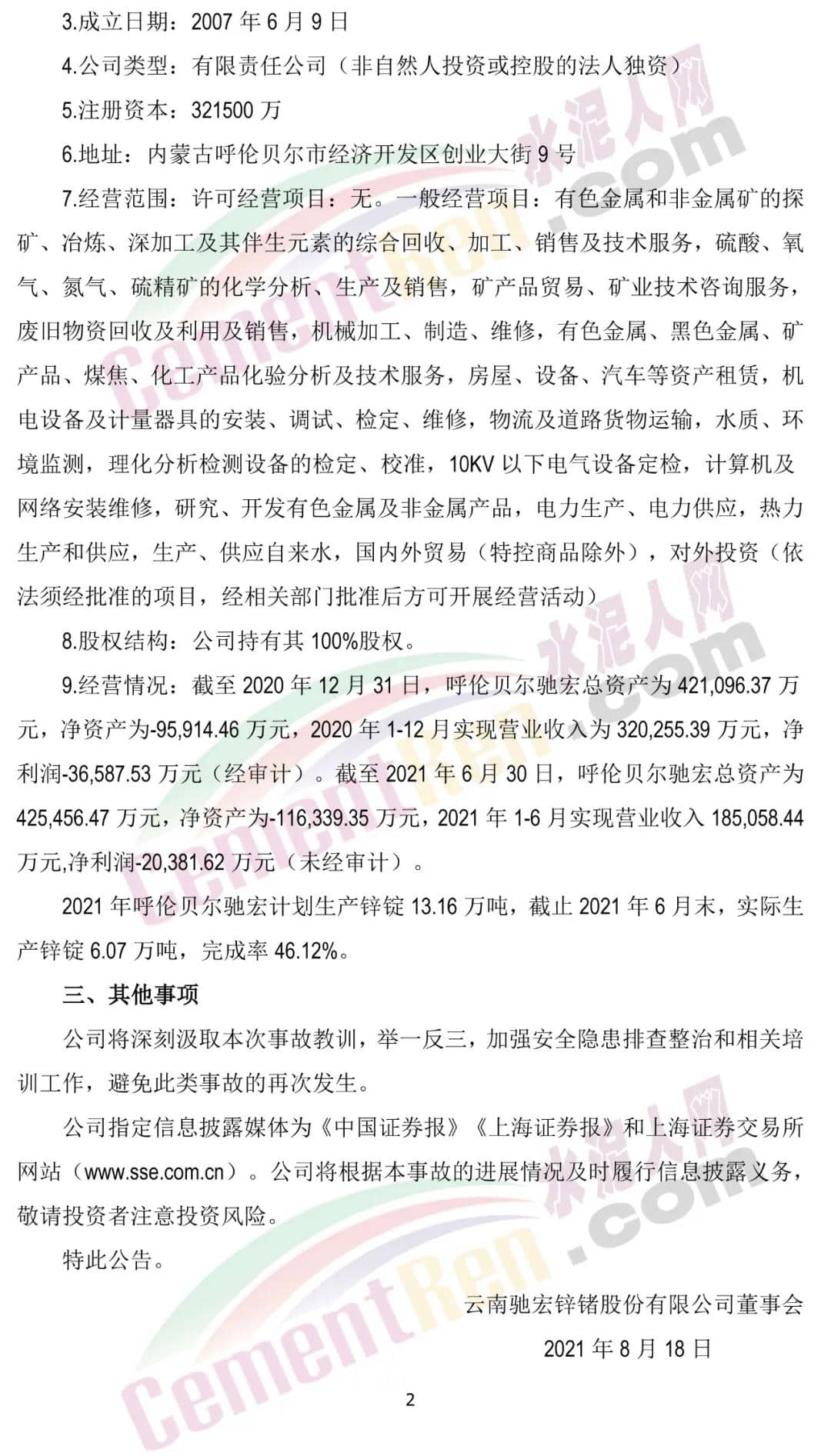 馳宏鋅鍺還表示,目前已按照呼倫貝爾市應(yīng)急管理局的上述要求,立即組織呼倫貝爾馳宏停產(chǎn)并全面開展安全隱患排查、整治和安全教育培訓(xùn)相關(guān)工作;并正積極配合相關(guān)部門的調(diào)查工作,事故的具體原因、相關(guān)責(zé)任、停產(chǎn)時間和對公司的影響有待進(jìn)一步核實(shí);同時本次事故未對呼倫貝爾馳宏其他生產(chǎn)區(qū)域和周邊環(huán)境造成影響。