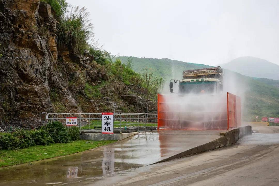 聚焦綠色礦山綜合發(fā)展,天礦堅持礦產(chǎn)資源開發(fā)領(lǐng)域有序、協(xié)調(diào)、高質(zhì)量發(fā)展,持續(xù)開展揚(yáng)塵治理,在礦區(qū)安裝采場噴淋設(shè)施,每當(dāng)?shù)V區(qū)車輛經(jīng)過,沖洗平臺便自動噴射水流,對車身以及輪胎進(jìn)行了全方位沖洗,有效切斷粉塵傳播途徑。