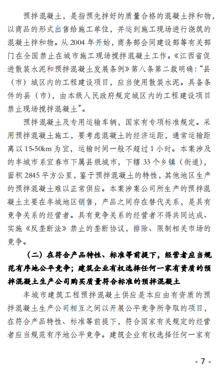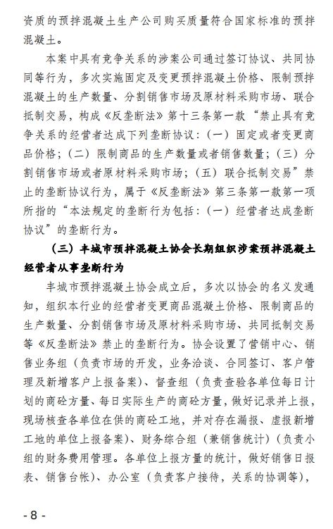 日前,江西省市場監(jiān)管局發(fā)布《豐城市預拌混凝土協(xié)會及其會員企業(yè)壟斷協(xié)議案的處罰決定》根據(jù)公安機關移交線索,江西省市場監(jiān)督管理局于2020年1月對豐城市預拌混凝土協(xié)會及其8家會員企業(yè)涉嫌壟斷協(xié)議行為立案調查。