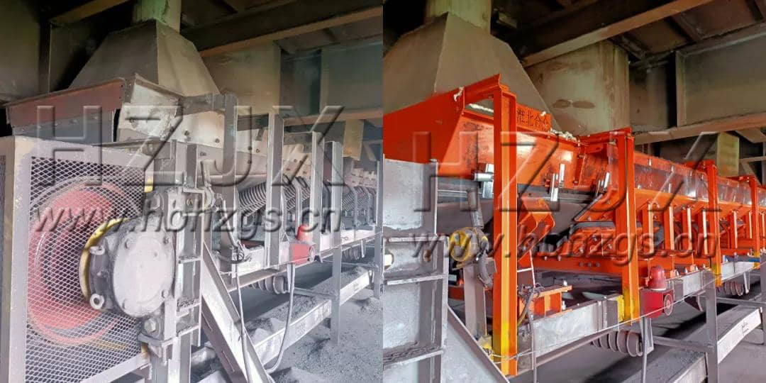 上峰水泥子公司導(dǎo)料槽改造前(左)后(右)對(duì)比