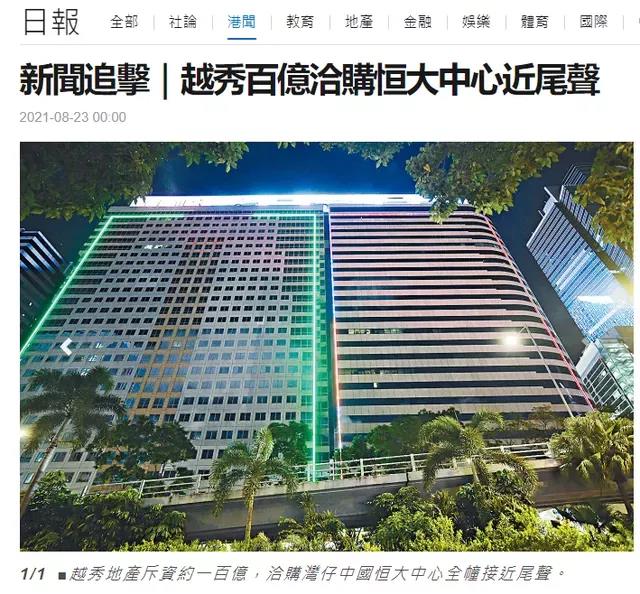 8月23日,據(jù)《星島日報》引述知情人士報道,中國恒大計劃以105億元將其香港總部大樓出售予越秀地產(chǎn)。據(jù)報,恒大此前曾提出156億元的意向價,兩家公司擬短期內(nèi)確認交易。