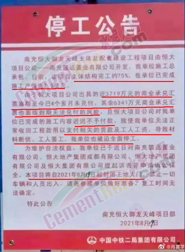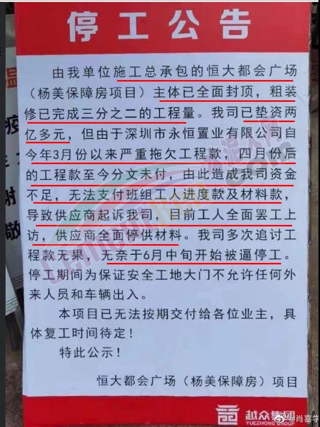 材料供應商表示已暫停向恒大集團及其成員企業(yè)供貨